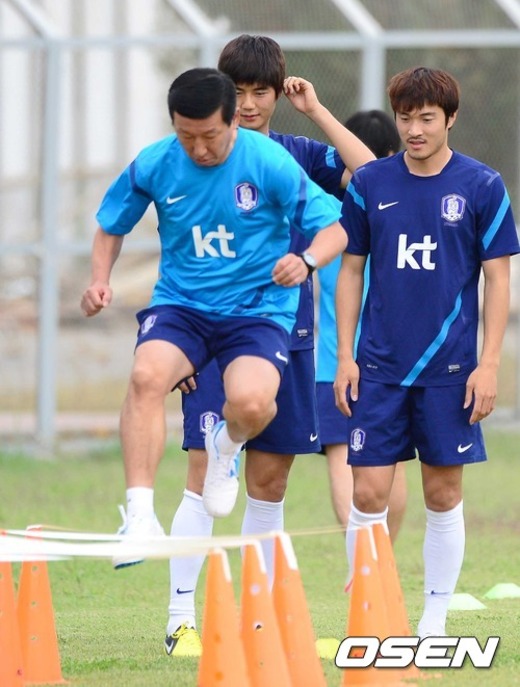 기성용과 박종우가 최강희 감독의 훈련 시범을 바라보고 있다. / sunday@osen.co.kr