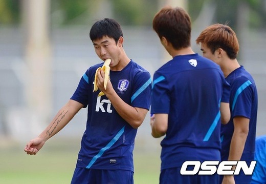 윤빛가람이 훈련 중 바나나를 먹고 있다. / sunday@osen.co.kr