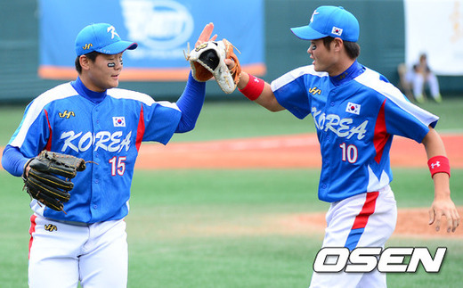 그러나 한국 대표팀이 바로 반격에 나섰다. 5회 1사 후 한승택의 몸에 맞는 볼, 유영준의 안타, 김인태의 볼넷으로 만루를 만들었다. 김민준이 몸에 맞는 볼로 밀어내기 득점을 성공시켰다.