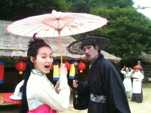 한정수는 지난 6일 자신의 트위터에 MBC 수목드라마 ‘아랑사또전’에 함께 출연하고 있는 신민아와 찍은 사진을 공개했다.