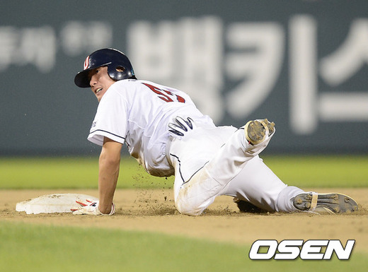 7일 오후 서울 잠실구장에서 열린 '2012 팔도 프로야구' 두산 베어스와 넥센 히어로즈 경기 7회말 무사 주자 1루 두산 정수빈 타석에서 넥센 선발 나이트의 실책으로 견재구가 빠지자 1루 주자 김재호가 2루에 세이프 되고 있다.