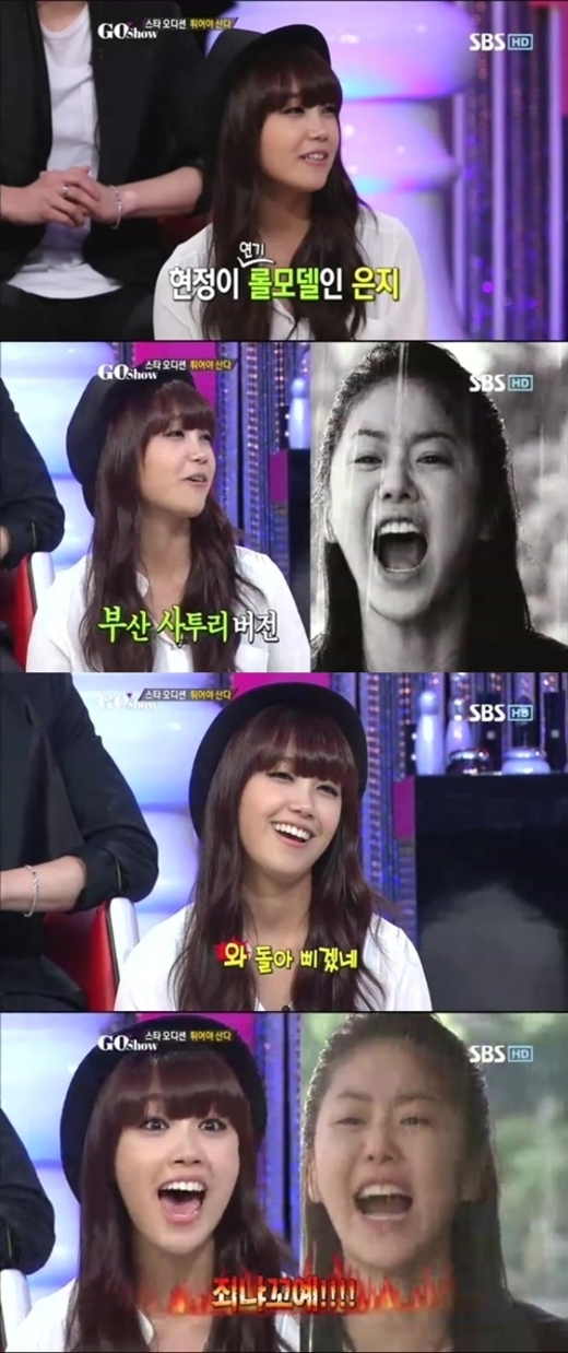 정은지는 지난 7일 오후 방송된 SBS ‘고쇼’에 출연해 지난 2010년 방영된 SBS 드라마 ‘대물’에서 나온 고현정의 성대모사를 펼쳤다.
