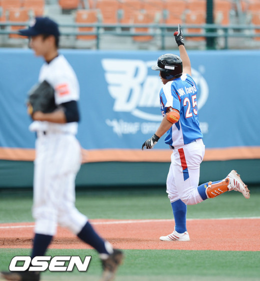 8일 오후 서울 목동구장에서 열린 제 25회 세계청소년야구선수권대회 대한민국과 일본과의 5-6위 전에서 9회초 선두타자 윤대영이 좌월 솔로홈런을 날린 후 그라운드를 돌며 기뻐하고 있다.