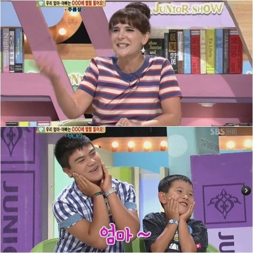 유진 군은 8일 방송된 SBS '스타주니어쇼 붕어빵'에서 "얼마 전 엄마가 거실 소파에 앉아 노란 액체를 바르고 있었다"며 말문을 열었다.