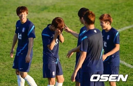 미니 게임에서 진 이청용이 벌칙을 받고 있다. / sunday@osen.co.kr