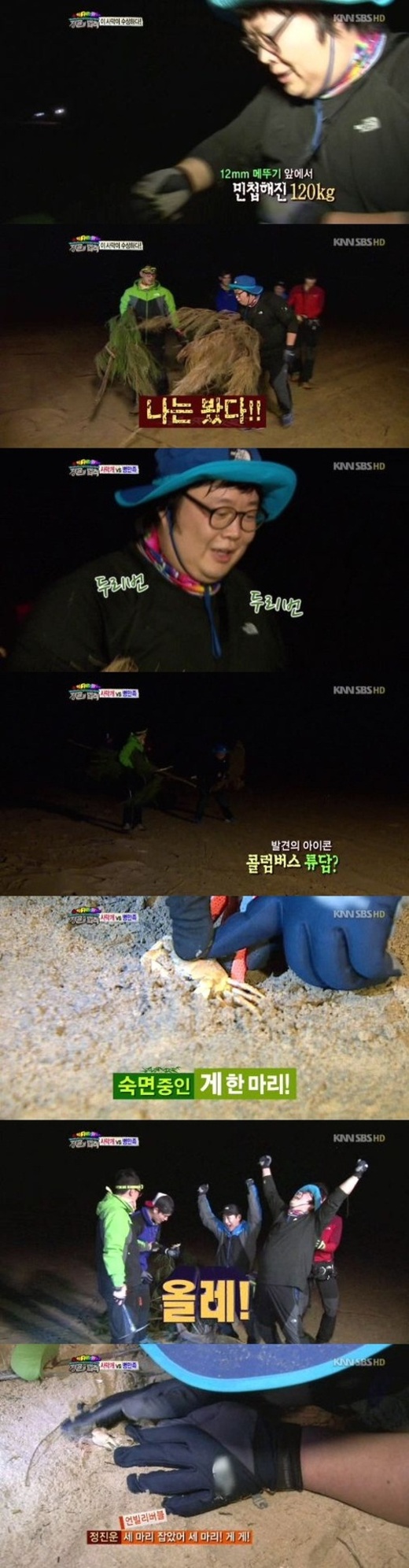 게 사냥에 나선 병만족 멤버들은 게를 사냥하는 것이 아니라 수집 수준으로 게들을 모았고 일곱 명이 충분히 먹을 수 있을 정도로 수십마리를 잡아 크게 환호했다.