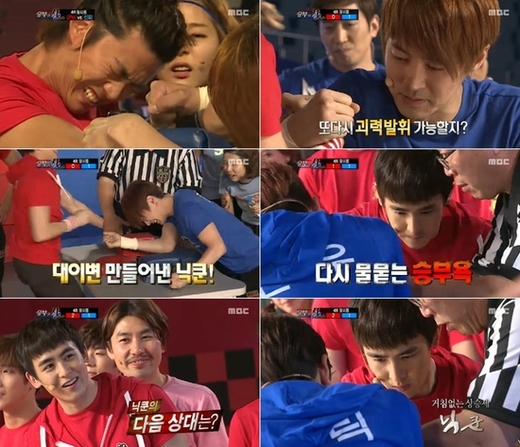연이어 세 사람을 이긴 닉쿤은 팔씨름에 자신이 없다는 앤디를 경기 상대로 지목, 굳히기에 들어갔으나 안타깝게 패배해 아쉬움을 남겼다.