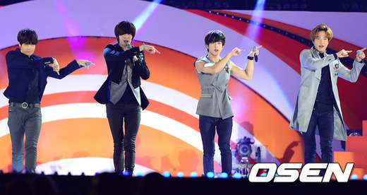 9일 오후 인천문학월드컵경기장에서 열린 제4회 2012 인천 K-POP콘서트(Incheon K-POP Concert 2012)에서 가수 초신성이 멋진 무대를 펼치고 있다