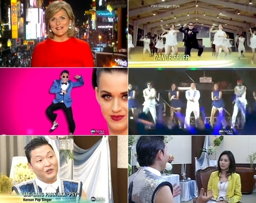 싸이는 지난 9일 자신의 트위터에 “미국 방송사 ABC에 또 나왔다”는 글과 함께 인터뷰 영상을 첨부했다. ABC ‘나이트라인’에 출연한 싸이는 “한국에서만 히트할 거라고 생각했고 해외 활동은 전혀 기대하지 않았다”며 현지의 반응을 기쁘게 받아들이는 모습을 보였다.