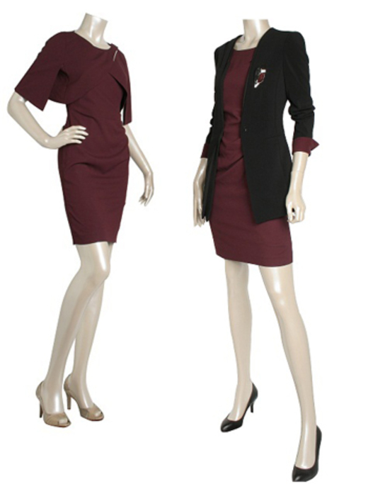 어깨 라인에 마치 날개를 얹은 듯한 여신 느낌의 케이프 원피스는 루즈한 상반신 실루엣으로 인해 허리 라인이 더욱 강조된 효과도 볼 수 있다. 하나만 입었을 때는 예복이지만, 재킷이나 카디건 등 가을 아우터와 함께 코디했을 때에는 고급스러워 보이는 오피스 룩으로도 손색이 없다. 옷의 컬러도 블랙 재킷과 와인 컬러 원피스 등 실용성 있는 시즌 컬러로 선택한다면 예복, 평상복 구분 없이 다양한 스타일로 연출 가능하다.