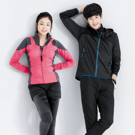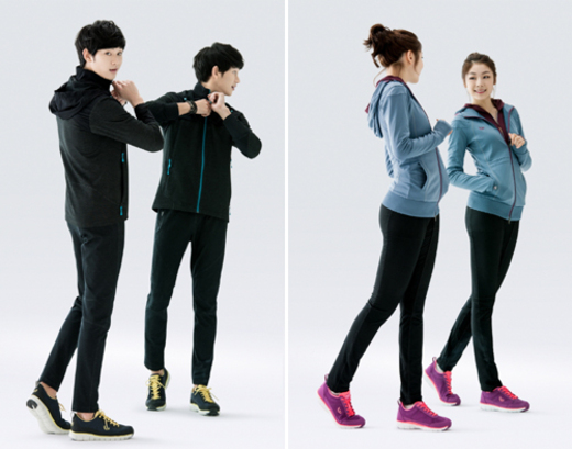 이 때, 김연아는 화사한 핑크톤의 트레이닝 재킷과 레깅스를 매치해, S라인 몸매와 각선미가돋보이는 슬림핏을 완성했다. 그레이에 핑크 컬러로 포인트를 준 슬림 워킹화를 선택하여 스타일에 통일감을 주고 사랑스럽고 깜찍한 느낌을 강조했다.