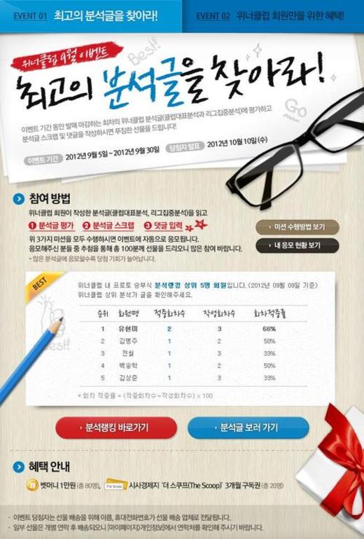 ‘최고의 분석글을 찾아라!’와 ‘위너클럽 분석왕은 누구?’ 2가지 이벤트로 진행