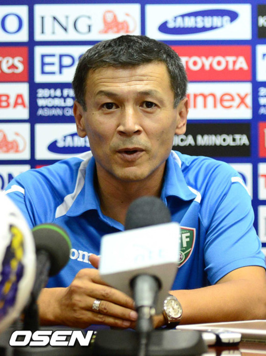 카시모프 감독은 지난 10일(이하 한국시간) 밤 우즈베키스탄 타슈켄트 파흐타코르 센트럴 스타디움에서 2014 브라질월드컵 아시아 최종예선 3차전 한국전을 앞두고 열린 공식 기자회견에 티무르 카파제와 함께 참석했다.
