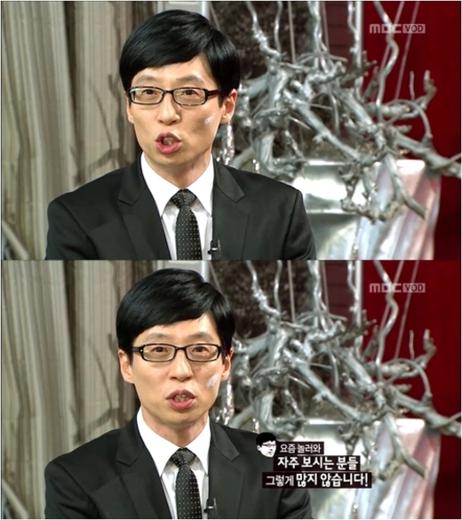 유재석은 지난 10일 방송된 MBC ‘유재석, 김원희의 놀러와’에서 패널 김응수와 박재범이 프로그램을 자주 봤느냐는 질문에 선뜻 긍정의 대답을 내놓지 못하자 “요즘 ‘놀러와’ 자주 보시는 분들 많지 않다”고 냉정한 현실을 직시하는 발언을 했다.