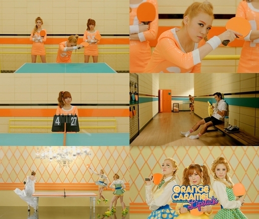오렌지캬라멜은 탁구를 콘셉트로 한 티저 영상에서 유쾌하고 발랄한 매력을 한껏 과시했다. 특히 세 멤버는 완벽한 포즈로 경기를 진행하다 등장한 훈남 선배의 매력에 폭 빠지는 깜찍함을 연기하기도 했다.
