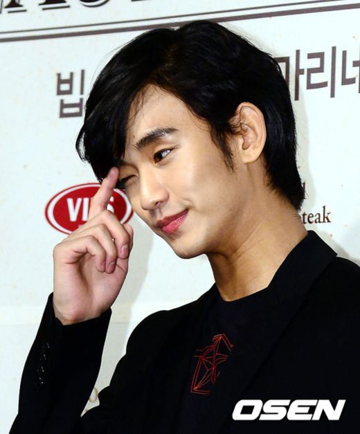 11일 오전 여의도 CGV에서 진행된 빕스 오리엔탈 마리네이드 스테이크 런칭 기념 '스테이크&토크쇼'에서 김수현이 머리를 만지고 있다.