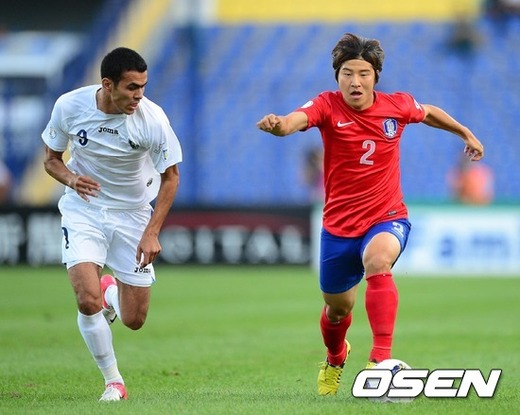 11일(한국시간) 우즈베키스탄 타슈켄트의 파흐타코르 센트럴 스타디움에서 2014 브라질월드컵 아시아 최종예선 3차전 한국과 우즈베키스탄의 경기, 전반 박주호가 우즈벡 문전을 돌파하고 있다.