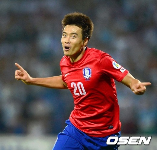 11일(한국시간) 우즈베키스탄 타슈켄트의 파흐타코르 센트럴 스타디움에서 2014 브라질월드컵 아시아 최종예선 3차전 한국과 우즈베키스탄의 경기, 후반 이동국이 역전골을 넣고환호하고 있다.