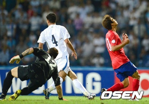 후반 박주영의 결정적인 슈팅이 우즈벡 골키퍼에 막히자 박주영이 아쉬워 하고 있다./sunday@osen.co.kr