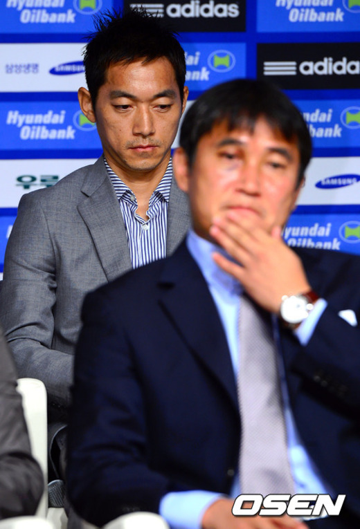 12일 오전 서울 아산청책연구원에서 진행된 '2012 K리그 스플릿 시스템 그룹B'(인천, 대구, 성남, 전남, 대전, 광주, 상주, 강원) 기자회견에서 인천 김봉길 감독과 김남일이 깊은 고민에 빠져 있다.