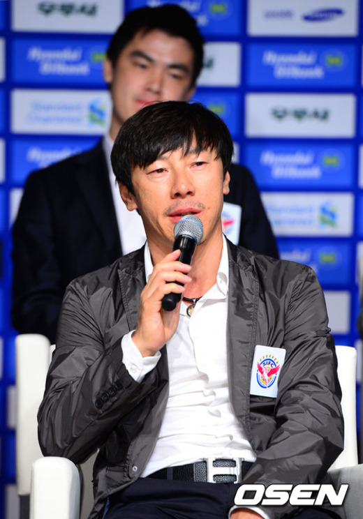 12일 오전 서울 아산청책연구원에서 진행된 '2012 K리그 스플릿 시스템 그룹B'(인천, 대구, 성남, 전남, 대전, 광주, 상주, 강원) 기자회견에서 성남 신태용 감독이 취재진의 질문에 답변하고 있다.