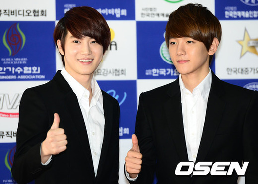 EXO 수호, 백현이 포토타임을 갖고 있다.