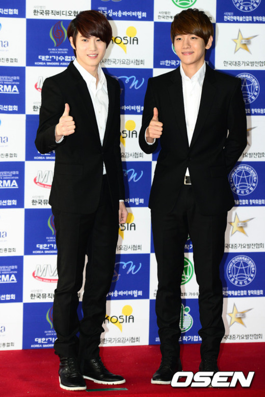 EXO 수호, 백현이 포토타임을 갖고 있다.