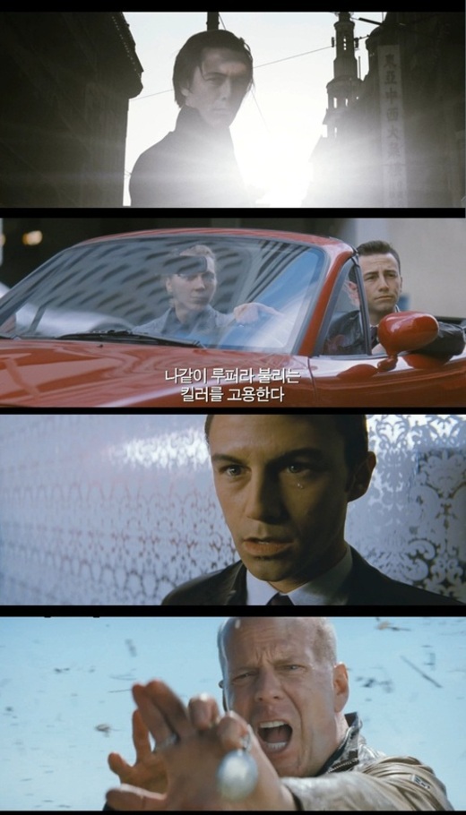 예고편 첫 화면에서 등장하는 “네 눈을 보기가 힘들어. 너무 이상해”, “네 모습이니까”란 브루스 윌리스와 조셉 고든 레빗의 대화가 이들이 동일 인물임을 암시한다.