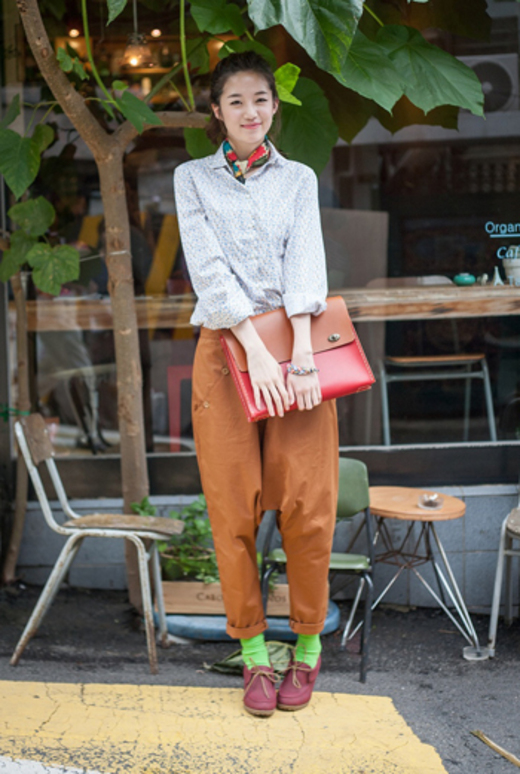 가방의 모양으로 전체 룩의 분위기를 반전시킬 수도 있다. 특히 70~80년대 학교 가방을 연상시키는 사각 형태의 가방은 2% 부족해 보이는 레트로 빈티지 룩을 완성해 주는 역할을 톡톡히 한다.