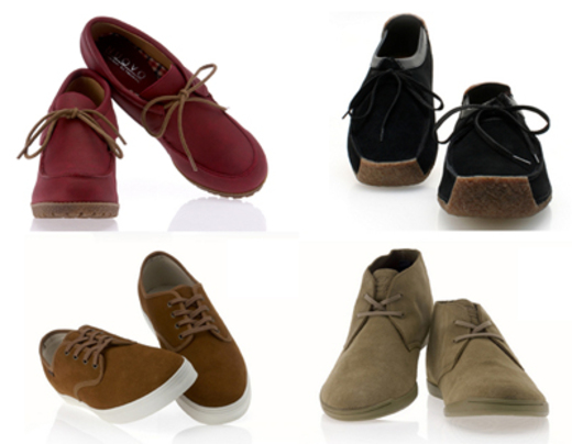 여자의 레트로 빈티지 룩은 레트로 빈티지 스웨이드 스니커즈는 물론 웨지형태의 일명 ‘통굽’ 구두와 발목까지 오는 워커 스타일의 스니커즈, 복고풍 옥스퍼드화 등의 신발로 완성할 수 있다.