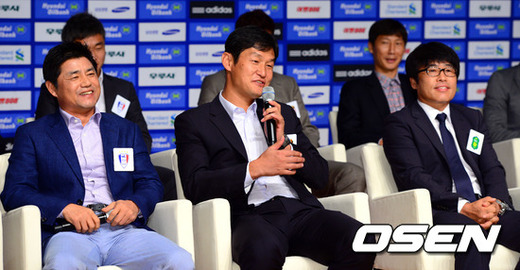 13일 오전 서울 아산청책연구원에서 진행된 '2012 K리그 스플릿 시스템 그룹A'(서울, 전북, 수원, 울산, 포항, 부산, 제주, 경남) 기자회견에서 최용수 감독이 취재진의 라이벌 팀에대한 질문에 답변을 하고 있다.
