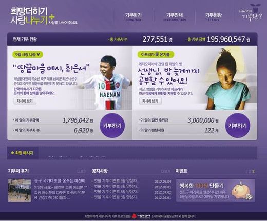 베트맨이 매달 펼치는 기부 프로젝트 '희망더하기 사랑나누기' 캠페인 홈페이지