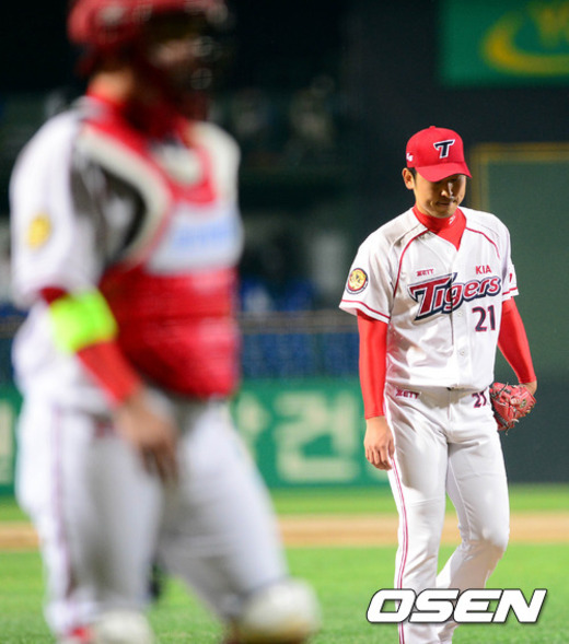 14일 오후 광주 무등구장에서 열린 '2012 팔도 프로야구' KIA 타이거즈와 롯데 자이언츠의 더블헤더 2차전 경기 4회초 종료 후 윤석민이 덕아웃으로 향하고 있다.