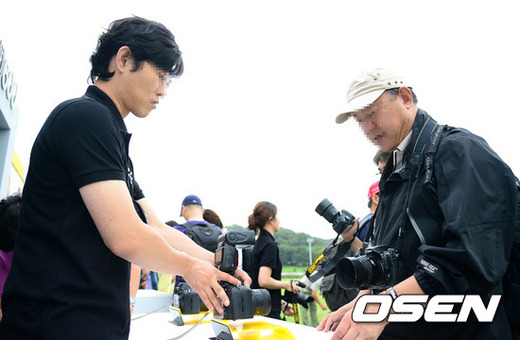 15일 오전 경기도 과천시에 위치한 서울 경마공원에서 열린 '니콘 레전드' 출사대회에서 남성 참가자가 신제품 D600을 만져보고 있다.