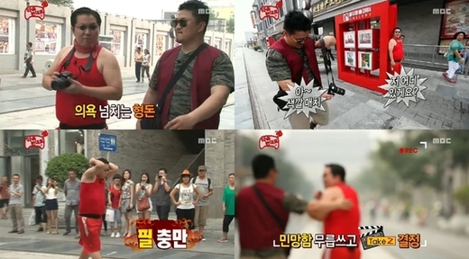 빨간색 민소매 셔츠와 반바지를 입은 정형돈은 동그란 렌즈의 선글라스를 선택, 현지인과 구별이 힘든 외모를 갖췄다. 그는 자신감을 등에 업고 중국 거리를 자신감 넘치는 스텝으로 활보했다.
