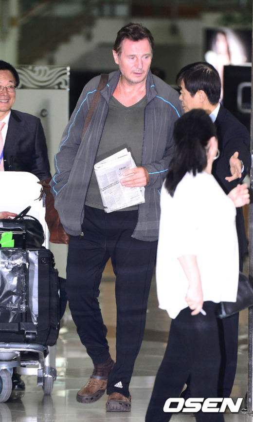 15일 오후 할리우드 스타 리암 니슨이 영화 '테이큰2' 홍보 및 공식 내한 기자회견을 위해 전세기를 타고 김포공항으로 입국하고 있다.