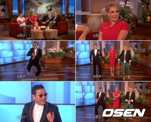 특히 지난 10일(이하 현지시간) 녹화된 미국 NBC '엘렌쇼'에서 팝스타 브리트니 스피어스에게 말춤을 가르쳐 주는 장면은 '강남스타일'의 해외인기를 입증함과 동시에 그 인기를 더욱 가속화하는 것이었다.