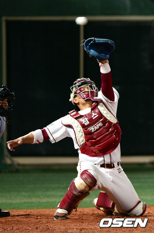 16일 오후 서울 목동구장에서 열린 '2012 팔도 프로야구' 넥센 히어로즈와 한와 이글스의 경기, 7회초 1사 만루 넥센 허도환이 투수 김상수의 폭투를 잡아내지 못하고 있다.