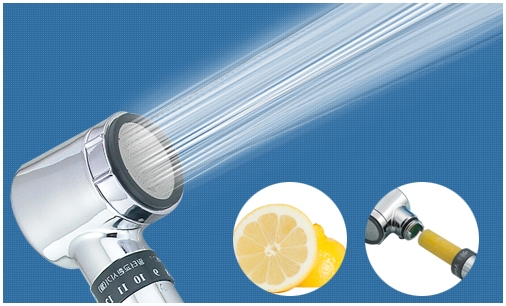이 제품은 수돗물의 염소를 걸러주는 세라믹 필터와 비타민C를 방출하는 레몬필터로 구성되어 있으며 미세 살수판을 통과한 물입자의 부서짐 효과가 극대화 되면서 수압이 3배 이상 증폭되며 폭포수의 최고 200배에 달하는 자연 음이온 까지 동시에 발생하는 똑똑한 “샤워기”가 등장했다.