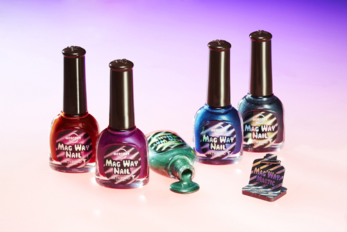 체리웨이, 베리웨이, 애플웨이, 스카이웨이, 나이트웨이 총 5가지 컬러로 나온 매그 웨이 네일은 자성입자와 네일 컬러가 함께 믹스되어 있다. 자석을 손톱위에 대면 네일 컬러 안의 자성입자가 자기장에 반응해 신기하고 독특한 무늬를 연출한다. 우수한 광택력과 선명한 컬러감이 특징으로 1-2회 덧발라주면 더욱 또렷한 패턴을 연출할 수 있다.