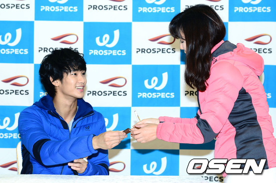 20일 오후 프로스펙스 코엑스 직영매장에서 슬림 스타일로 변신한 김수현을 만날 수 있는 '김수현 팬 사인회'에서 김수현이 행운의 주인공에게 사인을 건네고 있다.