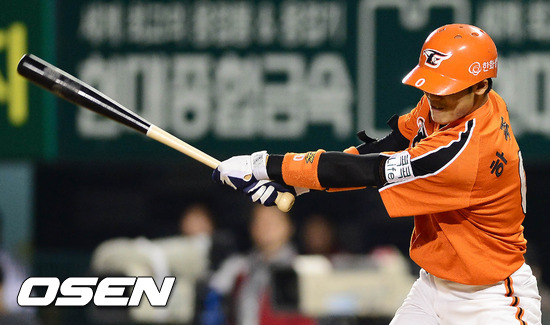 20일 오후 서울 잠실구장에서 열린 '2012 팔도 프로야구' LG 트윈스와 한화 이글스의 경기 2회초 1사 1,2루 하주석이 1타점 적시타를 치고 있다.