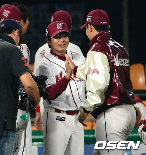 경기 종료 후 넥센 김성갑 감독대행이 김병현과 하이파이브를 하고 있다. / sunday@osen.co.kr