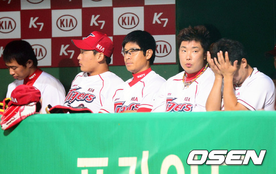 경기 종료 직전 KIA 선수들이 아쉬운 표정을 짓고 있다. / rumi@osen.co.kr