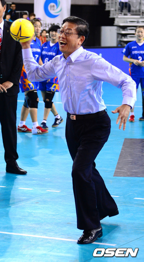 23일 오후 서울 방이동 SK핸드볼경기장에서 열린 '2012 SK핸드볼 코리아리그' 결승전 인천 체육회와 삼척시청의 경기전 김황식 국무총리가 시구를 하고 있다.