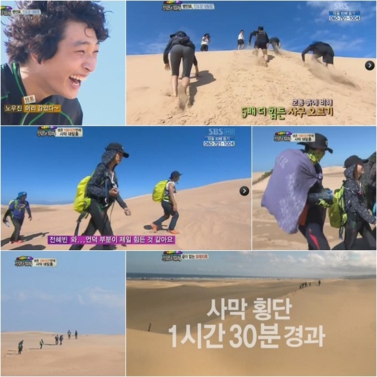 '사막횡단'이라는 도전은 활기찼지만 이들이 맞닥뜨린 상황은 녹록치 않았다. 한낮에 40도까지 올라가는 기온과 발이 푹푹 빠지는 사막 모래는 이들의 발목을 잡기 일쑤였다. 여기에 10kg이 넘는 개인배낭을 매고 생존해야했다.