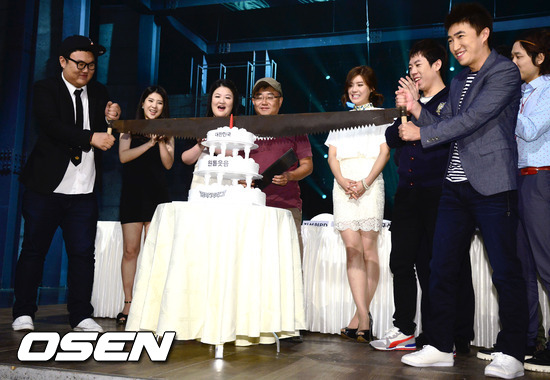 25일 오후 상암동 CJ E&M에서 진행된 종합 엔터테인먼트 채널 tvN의 대형 공개코미디 '코미디빅리그 (이하 코빅)' 제작현장 공개에서 코빅 출연진이 케익컷팅을 하고 있다.