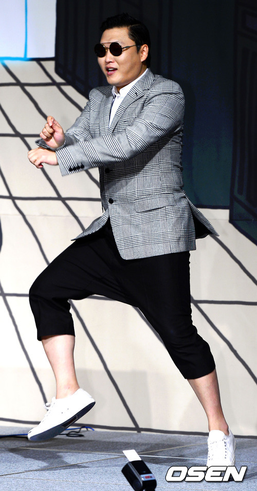 '강남 스타일'로 전 세계를 말춤으로 유행시킨 싸이의 기자회견이 25일 오후 서울 라마다서울 호텔에서 열려 싸이가 말춤을 추며 퇴장을 하고 있다.