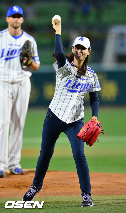 25일 오후 대구구장에서 열린 '2012 팔도 프로야구' 삼성 라이온즈와 KIA 타이거즈의 경기 전 2012 미스코리아 미 김나연이 시구를 하고 있다.