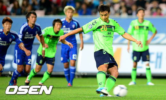 26일 오후 전주 월드컵경기장에서 열린 '현대오일뱅크 K리그 2012' 전북 현대와 수원 삼성의 경기 전반 이동국이 패널티킥을 성공시키고 있다.